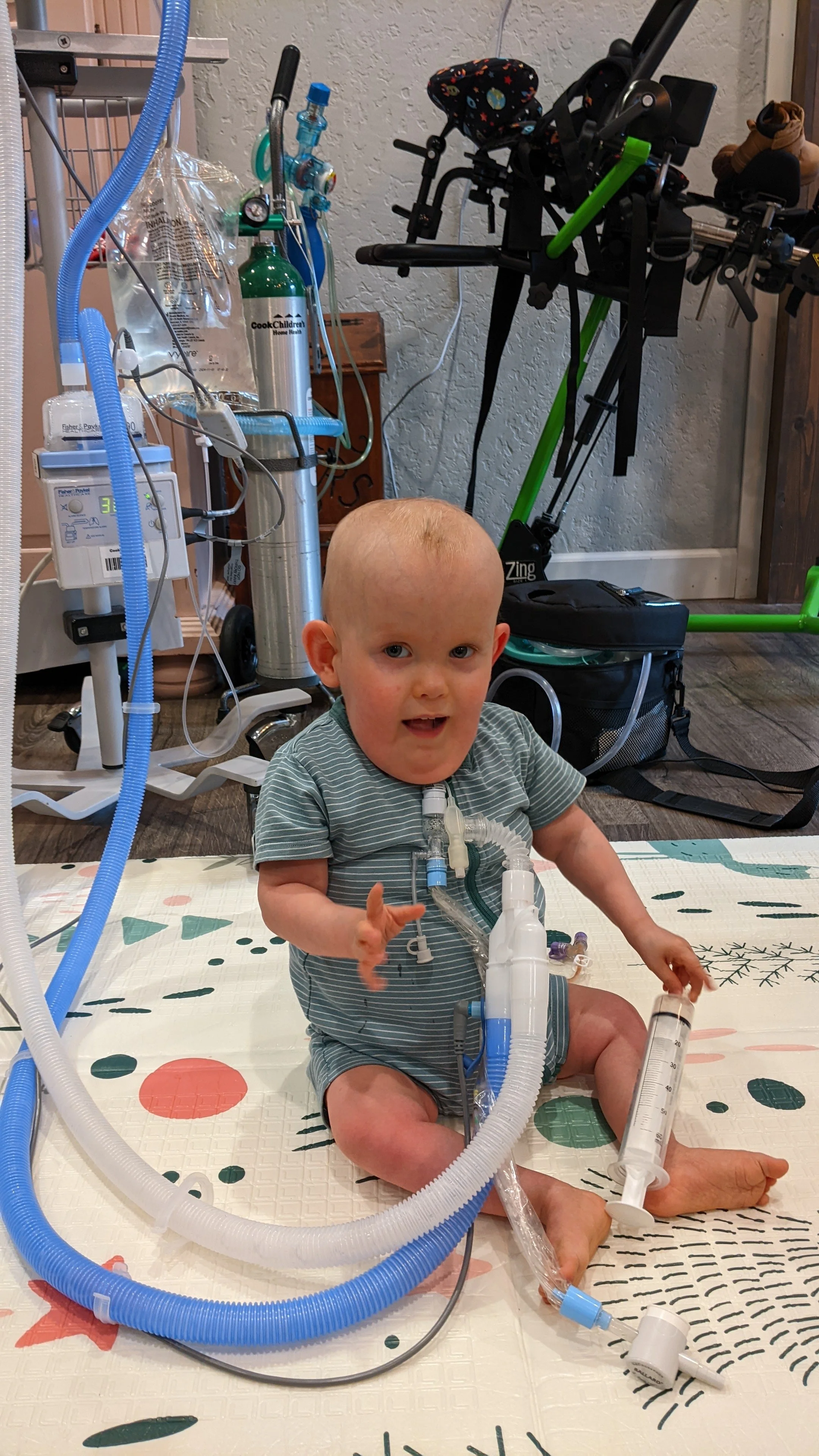 We can now take him off the vent for 15 minutes a day, so we pop outside to play on the swing or just for a change of scenery.